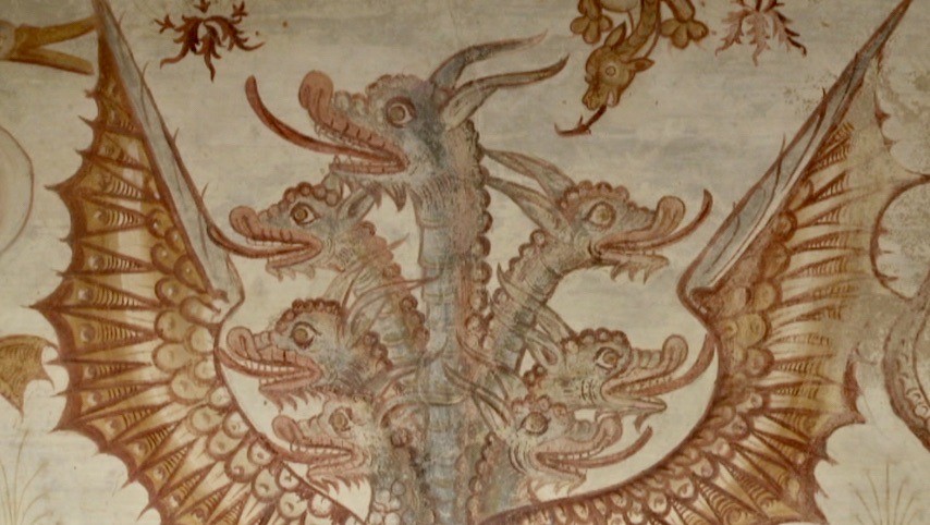 No centro histórico de Évora há um jardim com um alpendre decorado com as mais bem preservadas pinturas profanas quinhentistas que existem em Portugal. Paredes e tetos escondem sereias, dragões, leopardos, raposas, galos e falcões, figuras míticas e fantásticas ao lado de animais comuns, em jogos de metáforas com intenção de moralizar. Mas estes delicados frescos, mandados fazer por um sofisticado nobre, permitem ainda visualizar um mundo que conhecemos da poesia do Cancioneiro Geral e do teatro de Gil Vicente. Que comece esta viagem à vida palaciana num mural do século XVI.